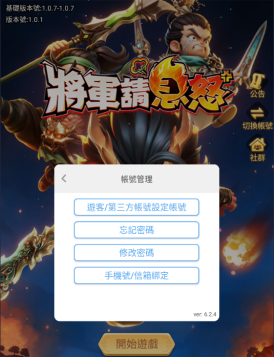步驟1:打開遊戲,進入帳號登錄介面,點擊頁面右上方的【帳號管理】。