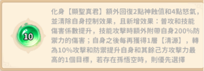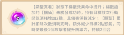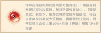 9星特性:每次受到攻擊一定會獲得免傷效果且防禦提升,可以疊加,可以讓楊戩更加能站住場。